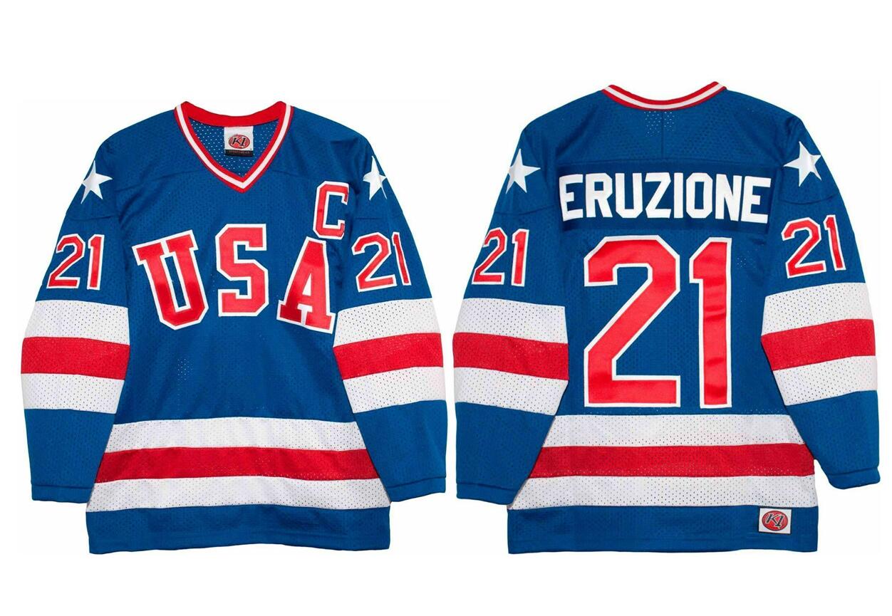 - 1980 Mike Eruzione Olympic USA MIRACLE Hockey K1 Jersey New Blue