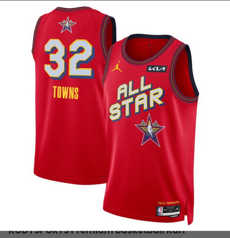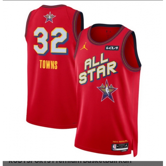 - Men 2025 All Star #32 Karl-Anthony Towns Red Stitched Basketball Jersey