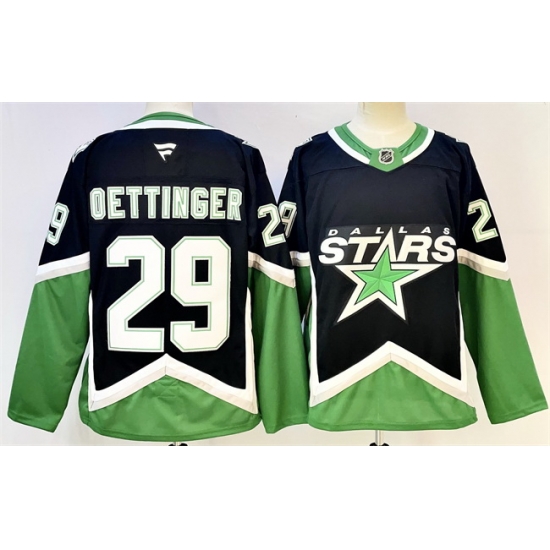 - Men Dallas Stars 29 Jake Oettinger Black 2022 23 Reverse Retro Stitched Jersey