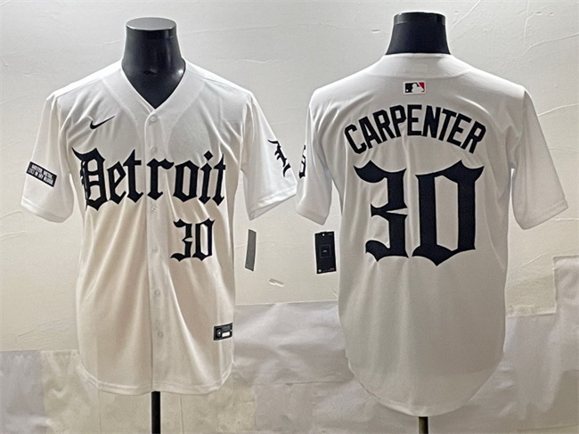 - Men Detroit Tigers 17 Parker Meadows White With Patch Cool Base Stitched Baseball Jersey
