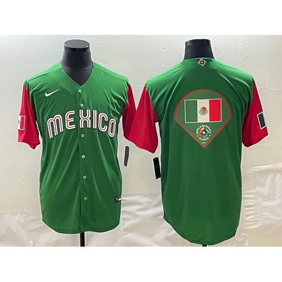 - Men Mexico Baseball Green 2023 World Baseball Classic Team Big Logo Stitched Jersey 4