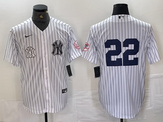 - Men's New York Yankees Big Logo White Pinstripe Cool Base Stitched Baseball Jerseys