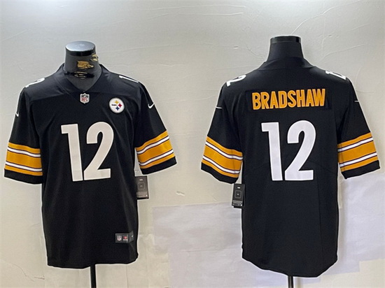 - Men Pittsburgh Steelers 12 Terry Bradshaw Black M&N Throwback Jersey