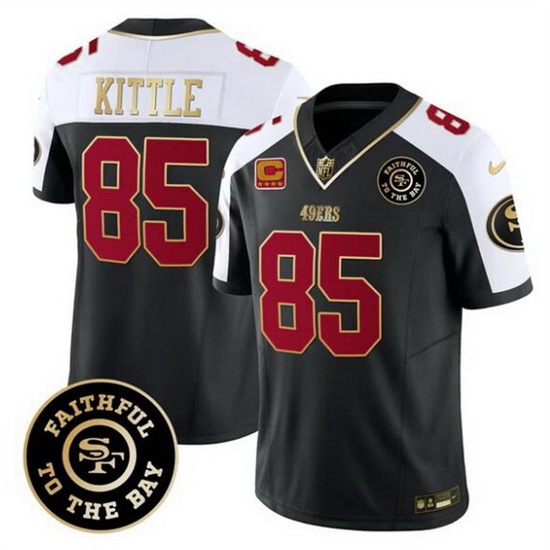 - Men San Francisco 49ers 85 George Kittle Black With Patch Cool Base Stitched Baseball Jersey