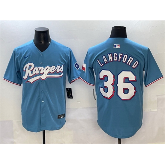 - Men Texas Rangers 36 Wyatt Langford Blue Limited Stitched Baseball Jersey