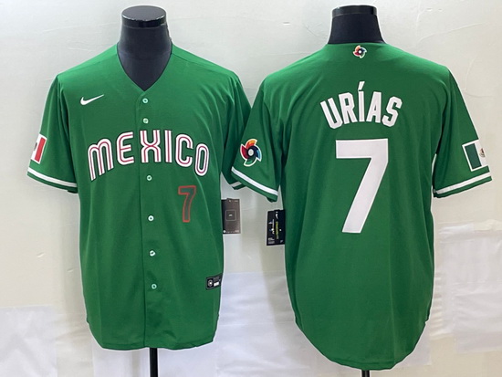 - Women's Mexico Baseball #7 Julio Urias Number 2023 Green World Classic Stitched Jersey1