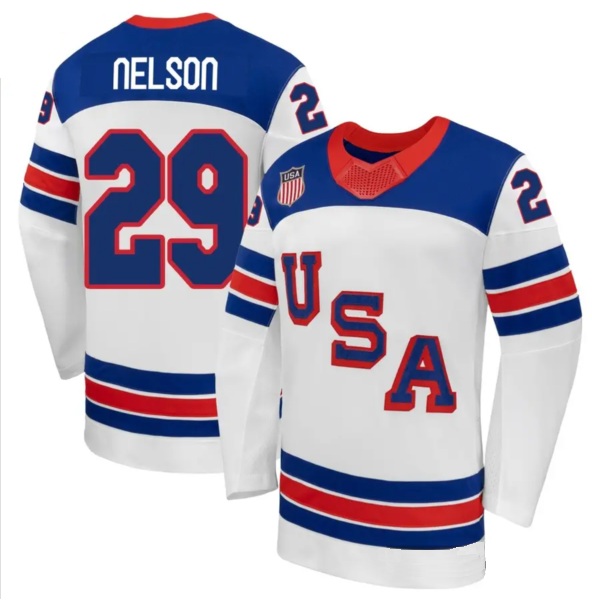 - Men's USA #29 BROCK NELSON White 2026 Stitched Jersey