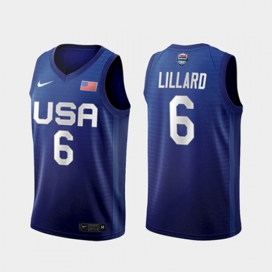 - USA Dream Team 6 Damian Lillard 2021 Tokyo Olymipcs Nike Basketball Jersey Blue