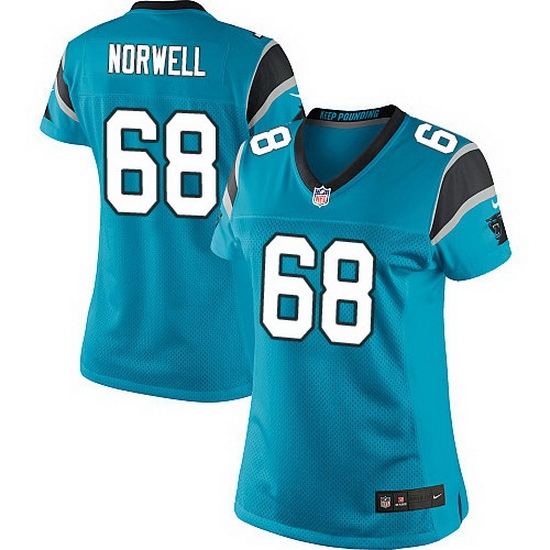 - Nike Panthers #67 Kawann Short Blue Team Color Women Stitched NFL Jersey