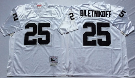 - Oakland Raiders White #25 BILETNIKOFF White Stitched NFL Throwback Jersey