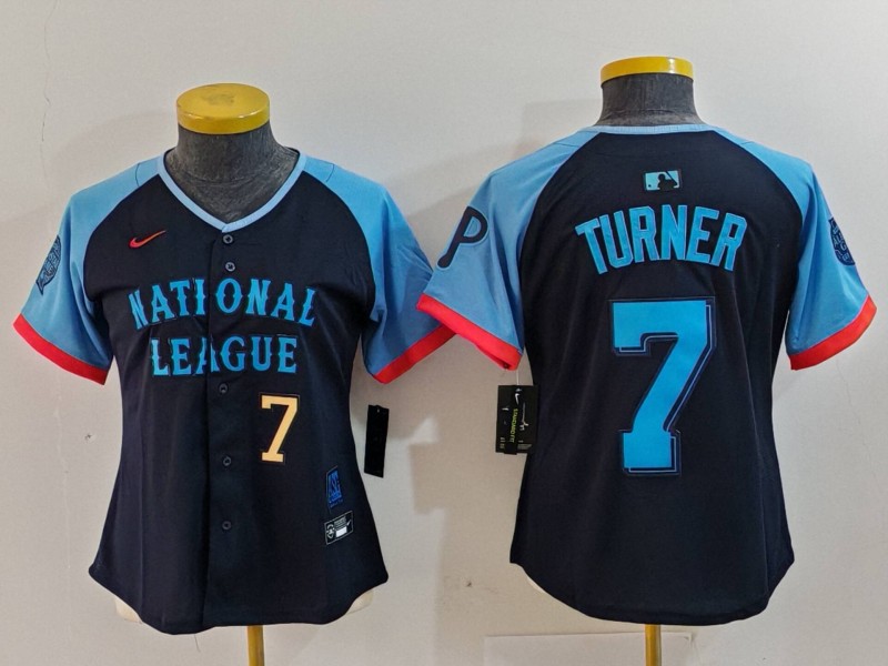 - Women National League 7 Trea Turner Navy 2024 All Star Limited Stitched Baseball Jersey