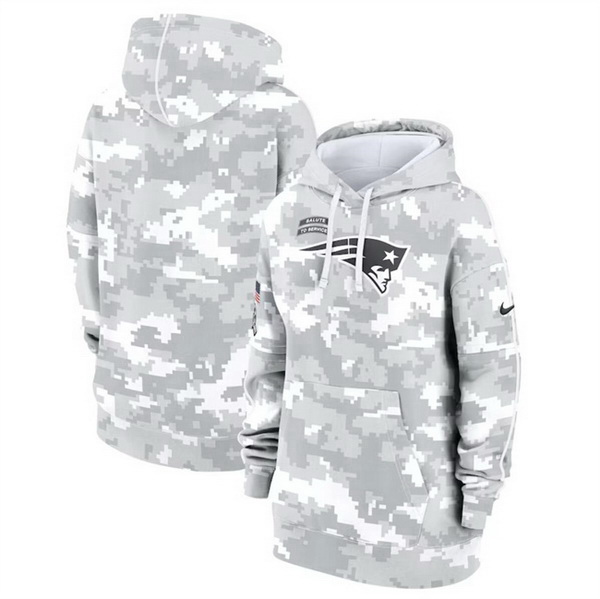 - Women New England Patriots 2024 Arctic Camo Salute To Service Club Fleece Pullover Hoodie