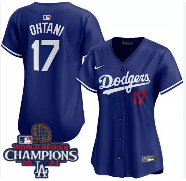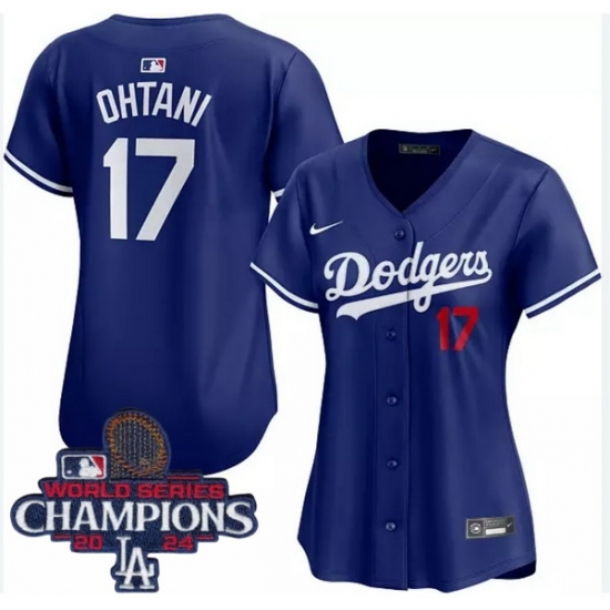 Home>MLB>2024 World Series Champions>Women>Women Nike Los Angeles Dodgers Shohei Ohtani #17 Blue Flex Base 2024 World Series Champions Stitched MLB Jersey