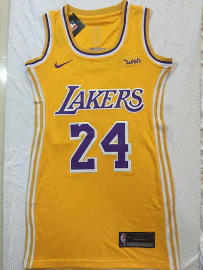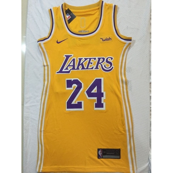 - Women Los Angeles Lakers 24 Kobe Bryant Dress Stitched Jersey Yellow