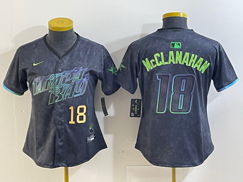- Women Tampa Bay Rays 18 Shane McClanahan Charcoal 2024 City Connect Limited jerseys 2