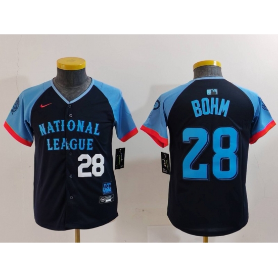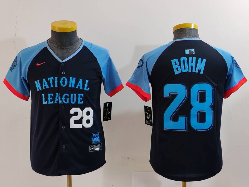- Youth National League 28 Alec Bohm Navy 2024 All Star Limited Stitched Baseball Jersey 8