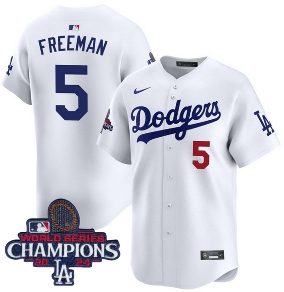 Youth Nike Los Angeles Dodgers Freddie Freeman #5 White Flex Base 2024 World Series Champions Stitched MLB Jersey