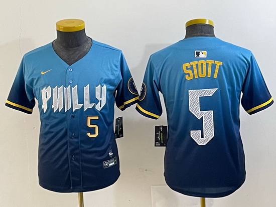 - Youth Philadelphia Phillies 28 Alec Bohm Blue Cool Base Stitched Baseball Jersey 2